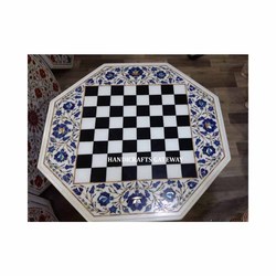 白い大理石のチェステーブルトップカラフル手作り滑らかで光沢のある表面スクエア形状高級ホームでチェスをするために使用