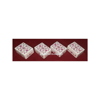 インドの最高のデザイナー手作り製品白大理石ピンク真珠の母インレイ花デザインコースターセット家庭装飾用